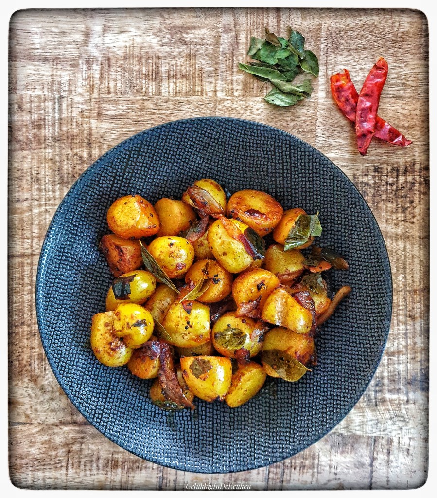 Aromatisch en gekruide aardappelen. Door de toevoeging van de chilipoeder is het een beetje pittig, maar als je het mild wil houden kan je het ook weglaten.
