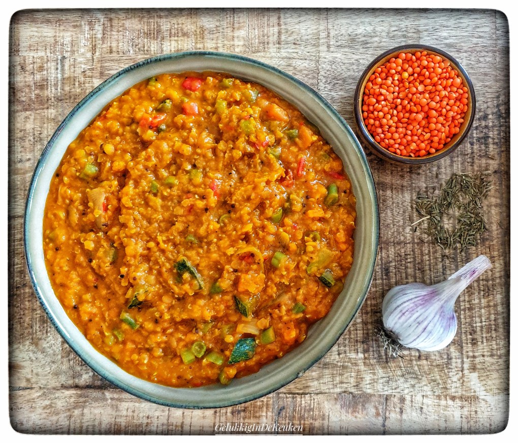 Een gezond en voedzaam bijgerecht. Rode linzen zit vol met vitamines, antioxidanten en plantaardige eiwitten. De romige linzenstoof is lekker met rijst of naan.