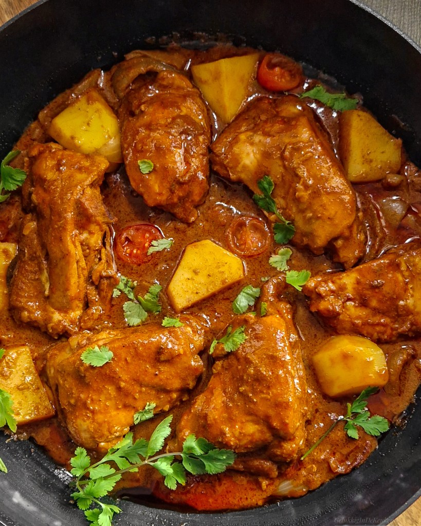 Ik vind het lekker om een paar aardappelen mee te koken in de curry, maar dit is optioneel.