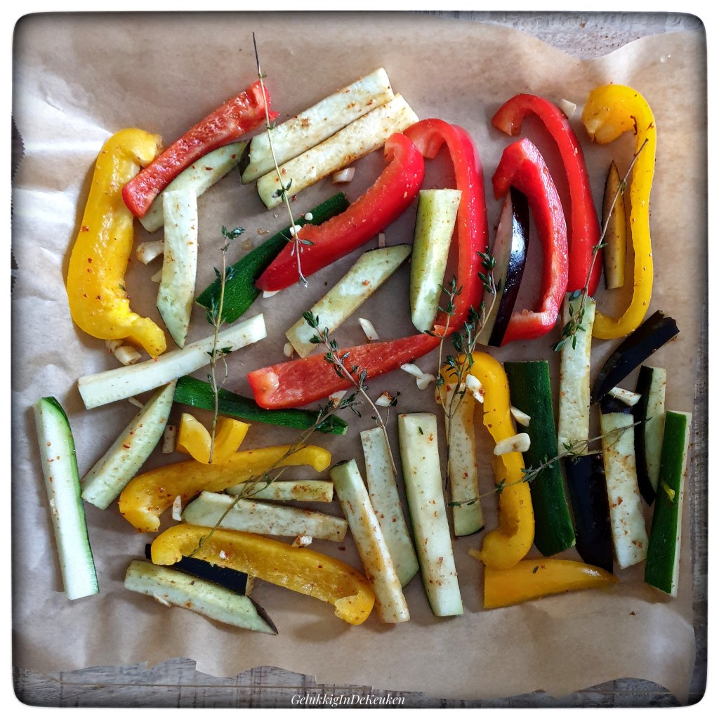 Op zich heb je niet veel werk om deze wraps te maken. Je snijd de groenten en mengt het met de kruiden en olie en voor de rest doet de oven het werk.