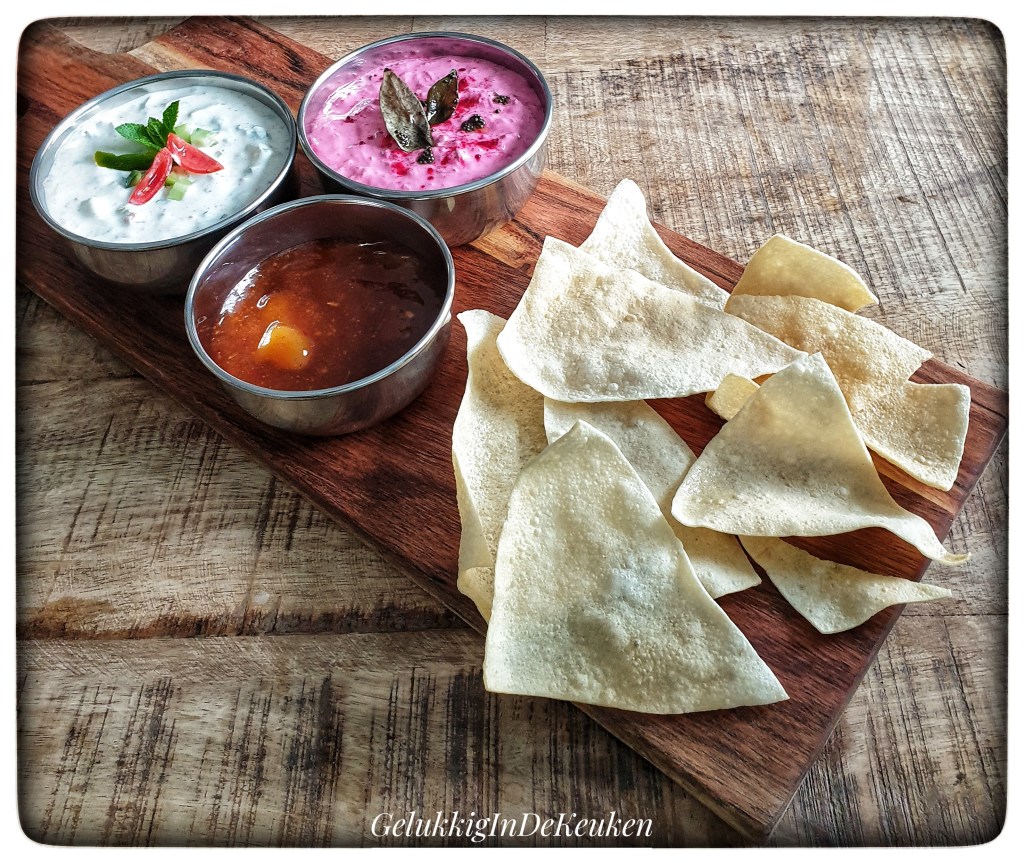Raita wordt vaak geserveerd met curries, maar is ook lekker als snack met papadums.