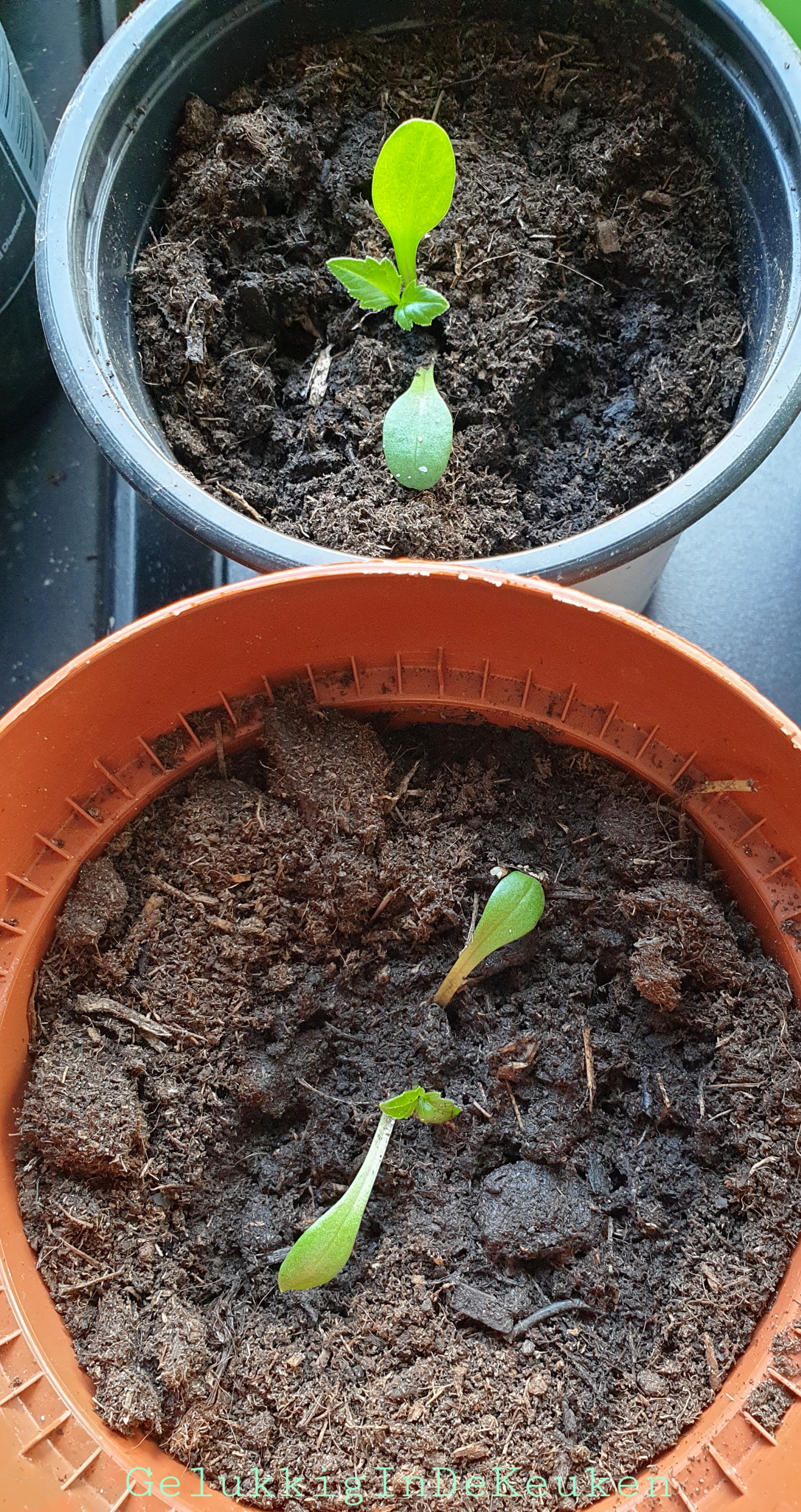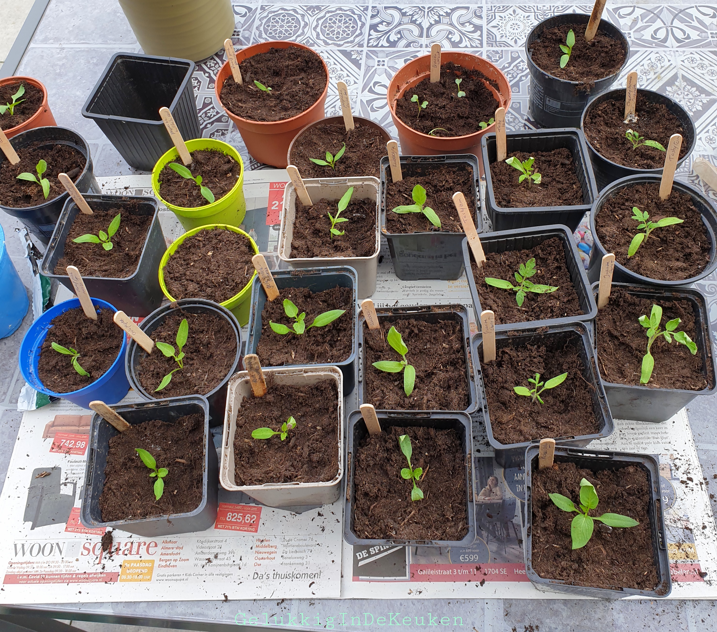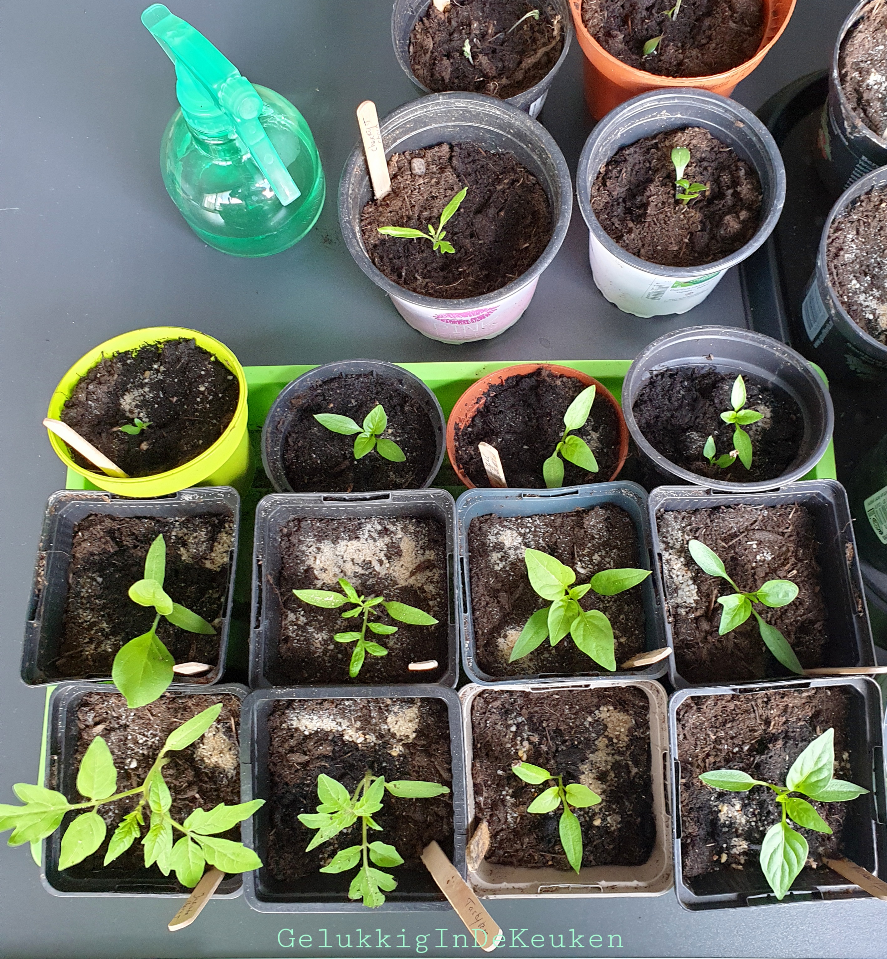 Een paar weken terug heb ik de eerste zaailingen verspeend.