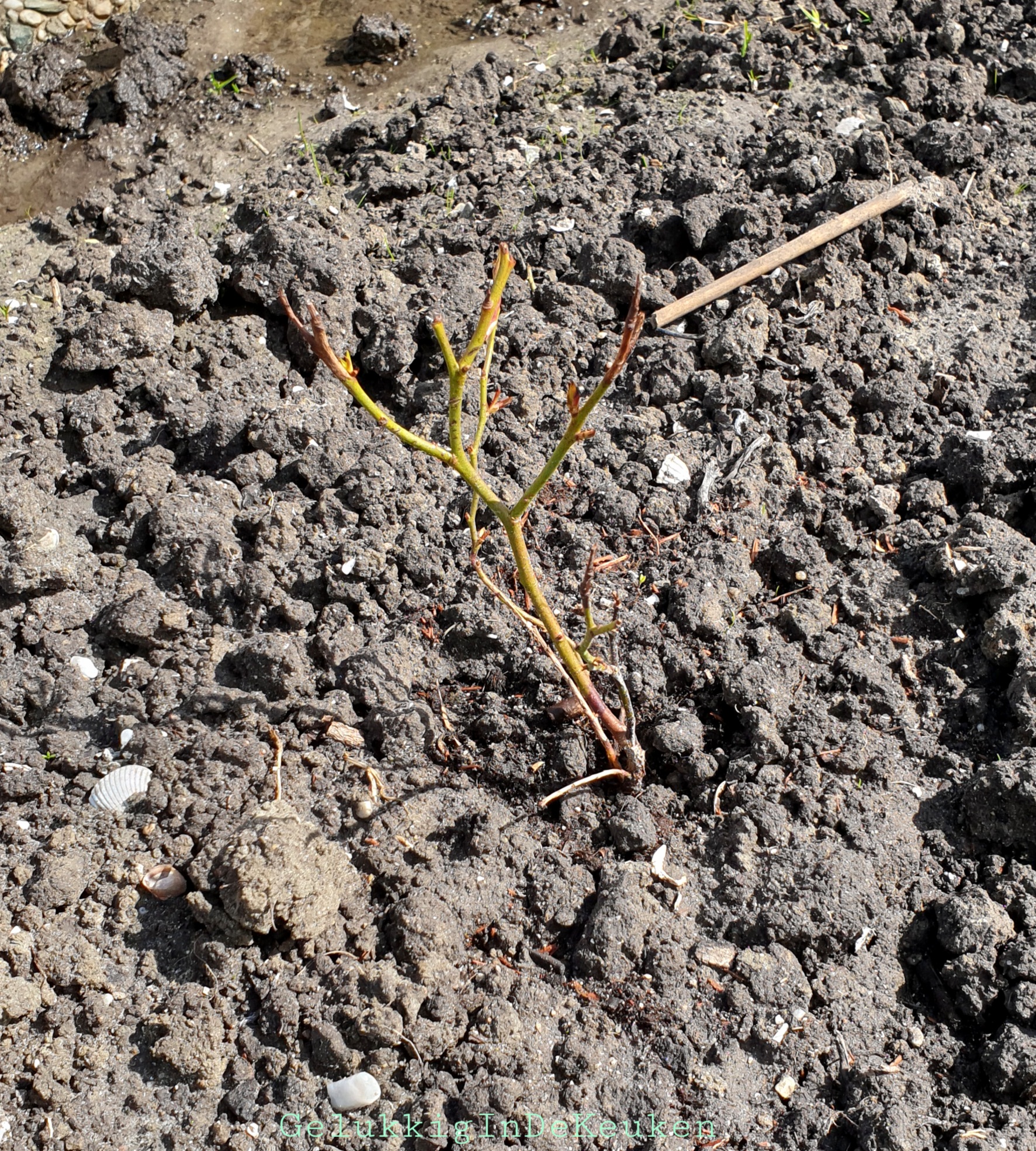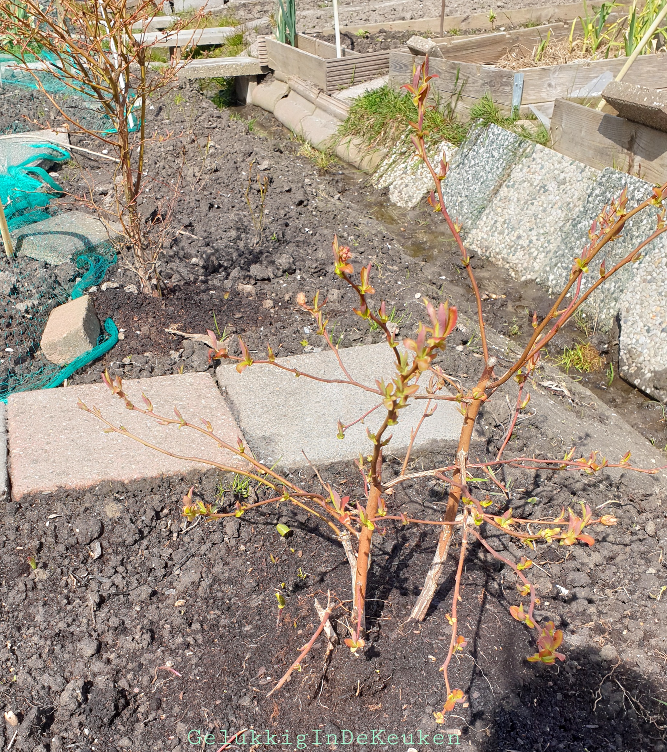 Op de moestuin heb ik vorig najaar twee blauwe bessen struiken geplant. Deze stonden voorheen bij mij thuis, maar deden het niet heel goed. Twee weken terug heb ik nog 3 blauwe bessen struikjes geplant op de moestuin. Deze zijn nog erg klein, dus daar verwacht ik niet veel bessen van dit jaar.