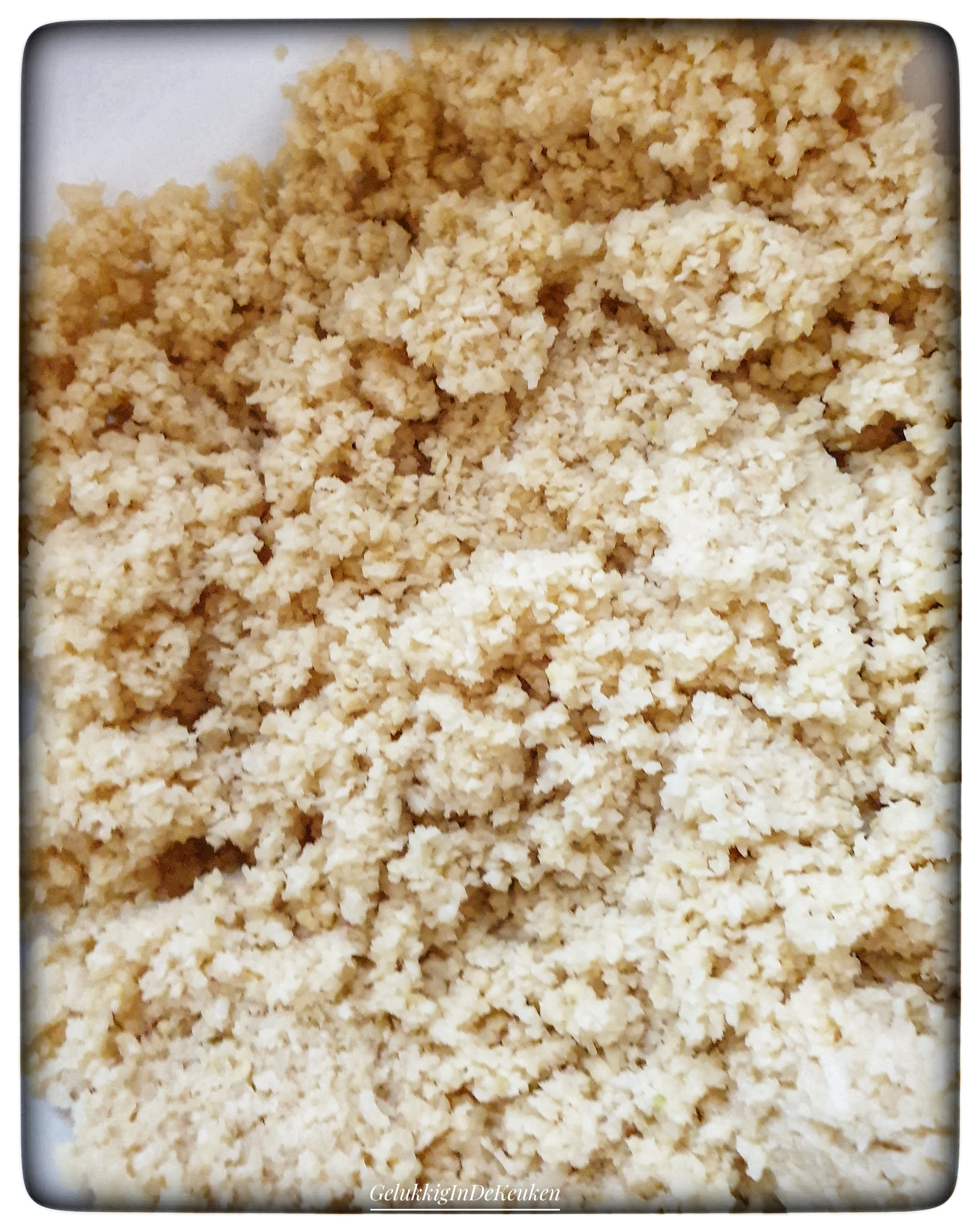 Vervolgens moet de tuinbonen gepureerd worden in een keukenmachine. Zorg ervoor dat het een heel klein beetje korrelig blijft, maar niet te grof. Het kleine beetje korreligheid geeft krokantheid aan de falafel.