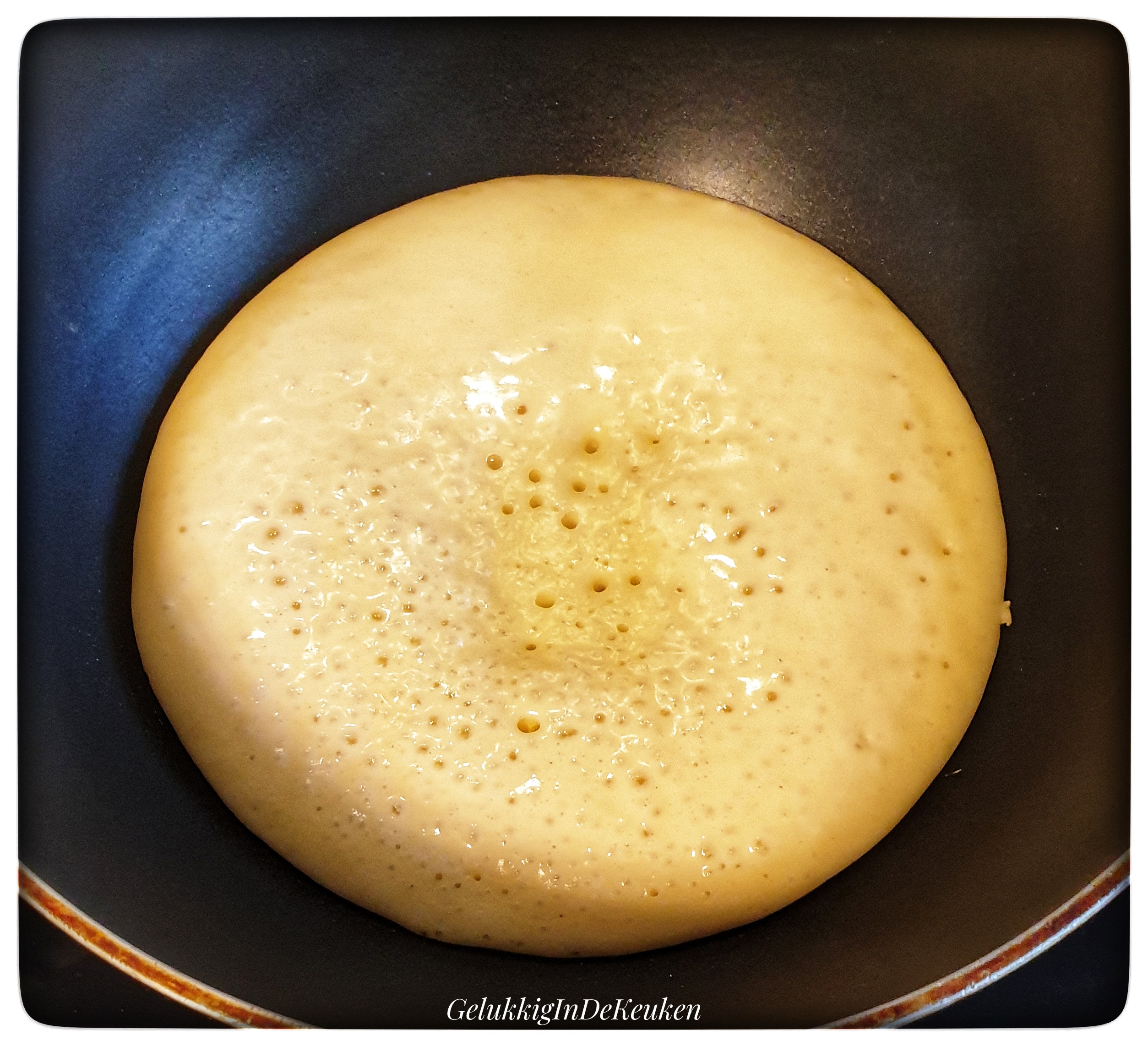 Ik heb 5 medium pannenkoeken gemaakt van dit recept. Je kan eventueel kleine pannenkoeken maken, maar houdt de baktijd in de gaten.