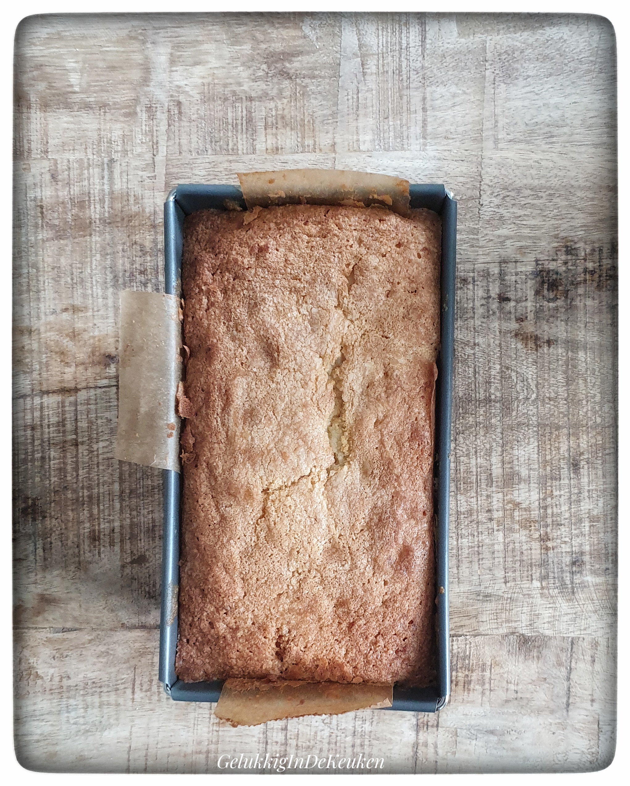 Mocht je een groter en lager bakblik nemen, houdt de baktijd dan in de gaten. Waarschijnlijk zal het korter zijn. Controleer met een cakeprikker of deze er schoon uitkomt, dan is de cake gaar.