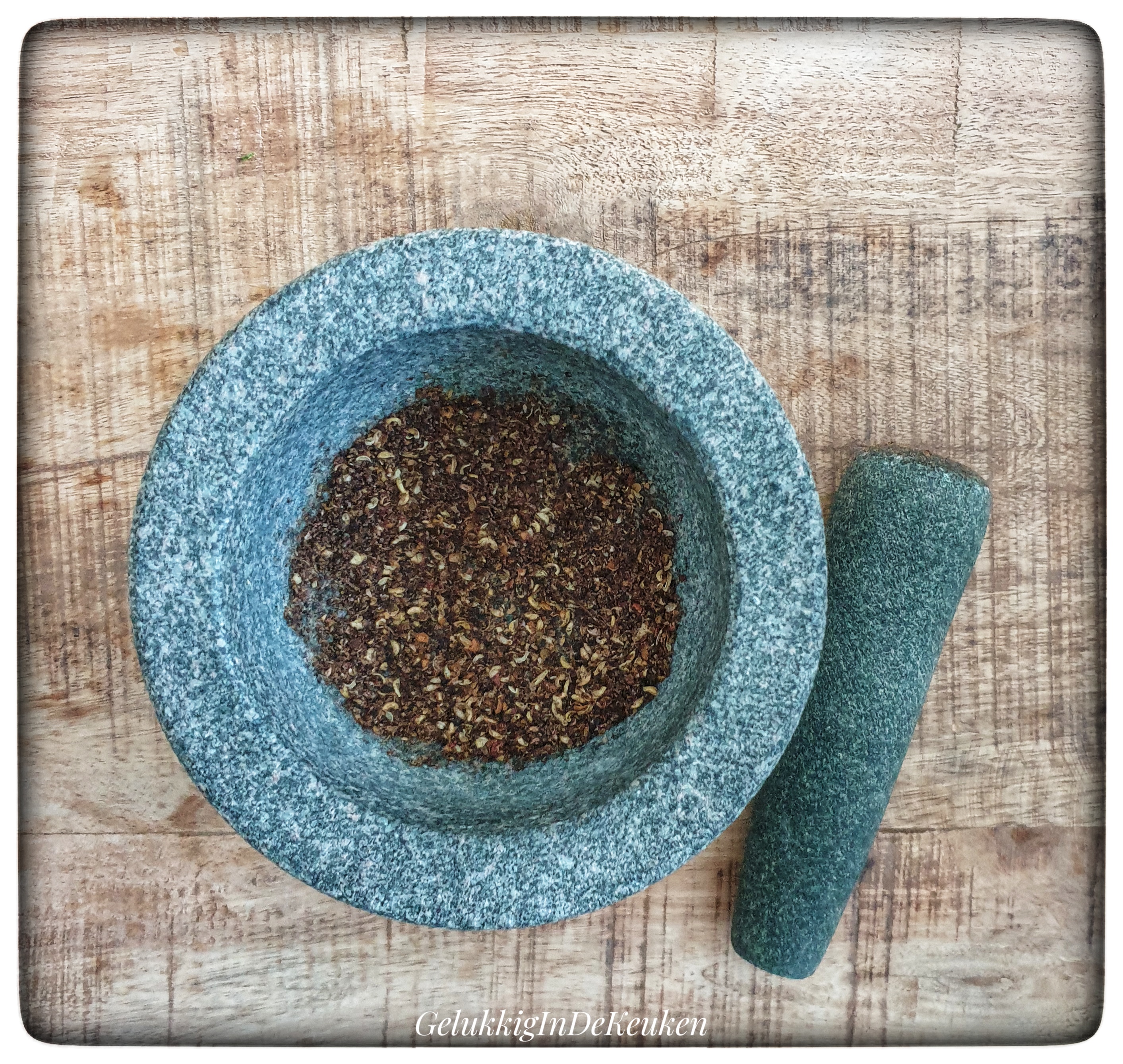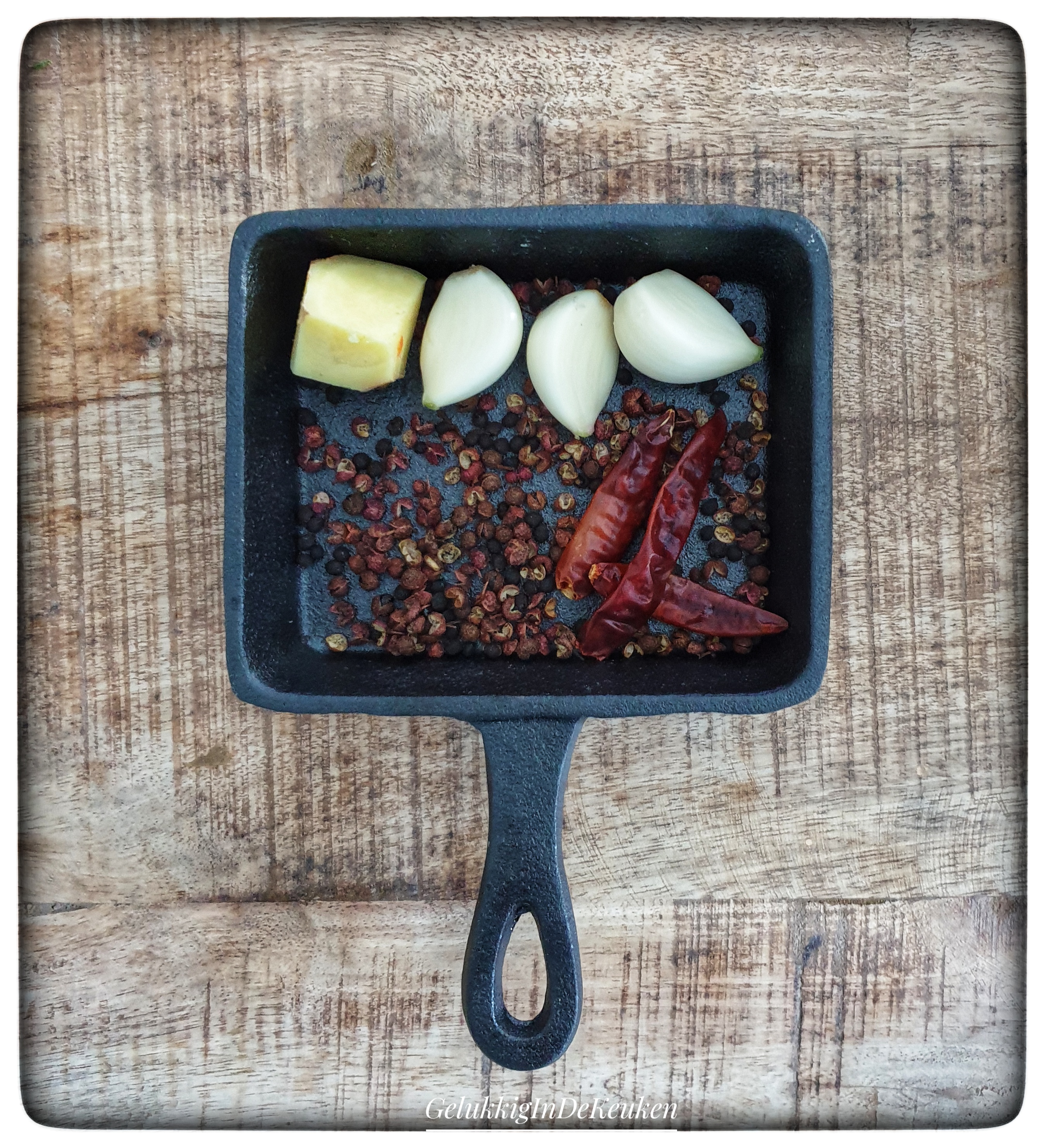 Ik rooster de szechuan peperkorrels altijd heel kort in een droge koekenpan tot het begint te geuren en vervolgens vermaal ik het fijn in een vijzel.
