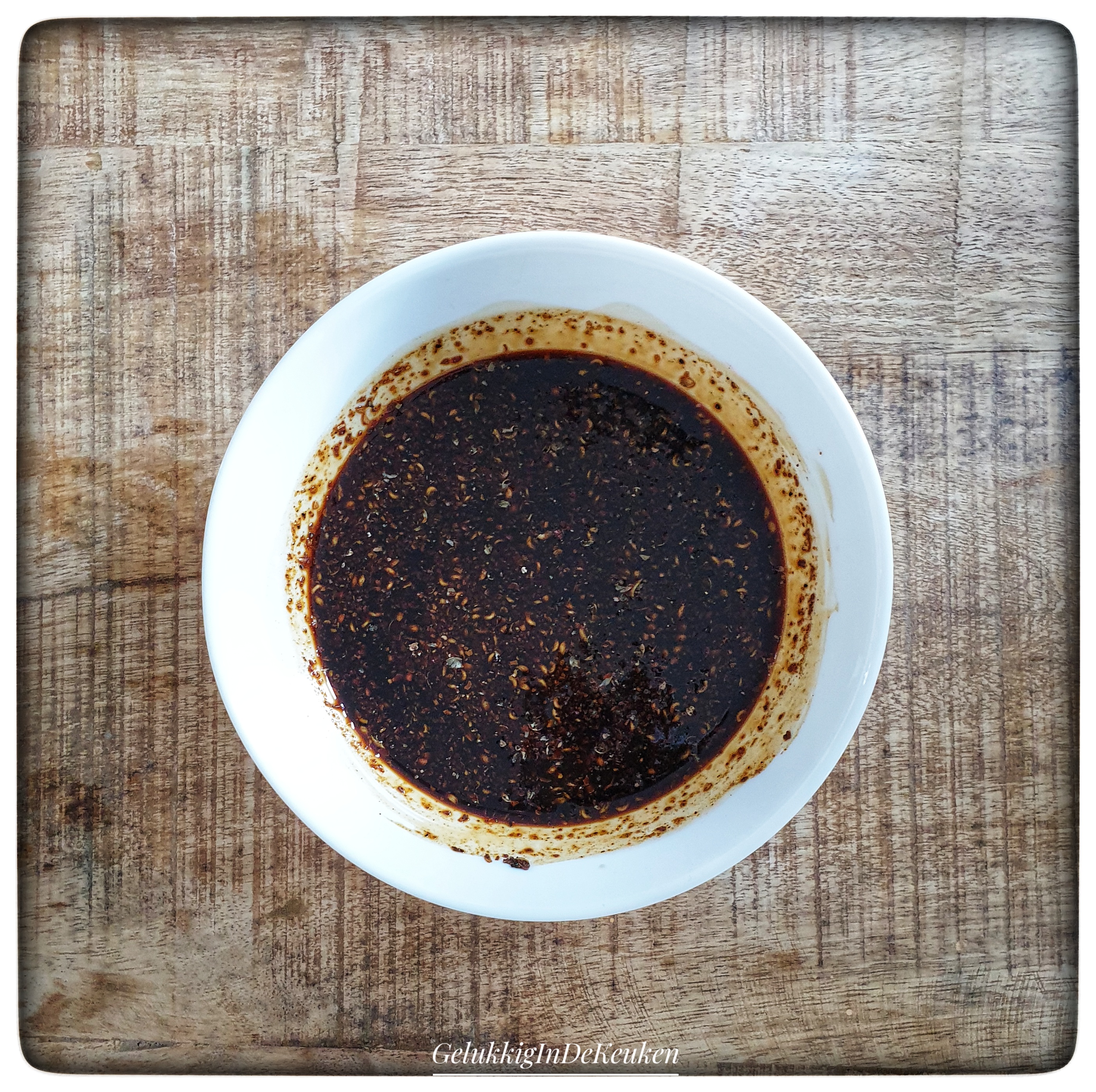De gemalen szechuan gaat vervolgens in een saus. Ik giet de saus door een zeefje bij de noedels, zodat er geen grove stukjes peperkorrels in het gerecht komt. Dit gaat knarsen tijdens het eten en dat vind ik niet lekker.