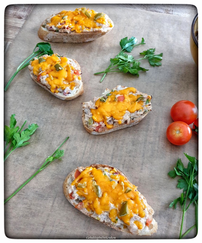 De tuna melt sandwiches is inmiddels wel bekend. Deze mini variant in de vorm van hapjes staan leuk op een hapjesplank en doen het goed op feestjes.