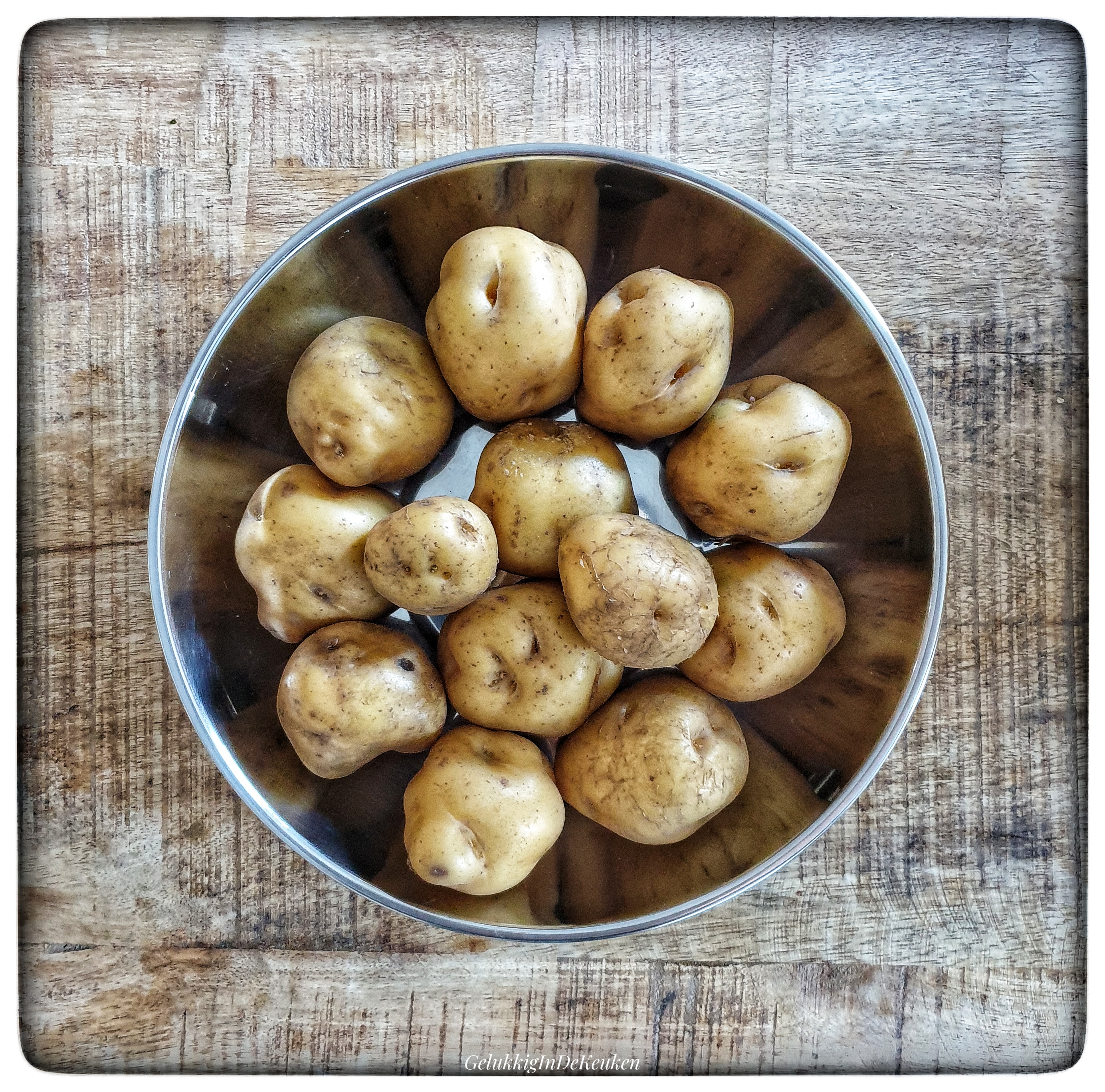 Ik neem vaak Opperdoeze aardappelen als het in het seizoen is. En als ze niet verkrijgbaar zijn dan gewoon kruimige of vastkokende aardappelen.