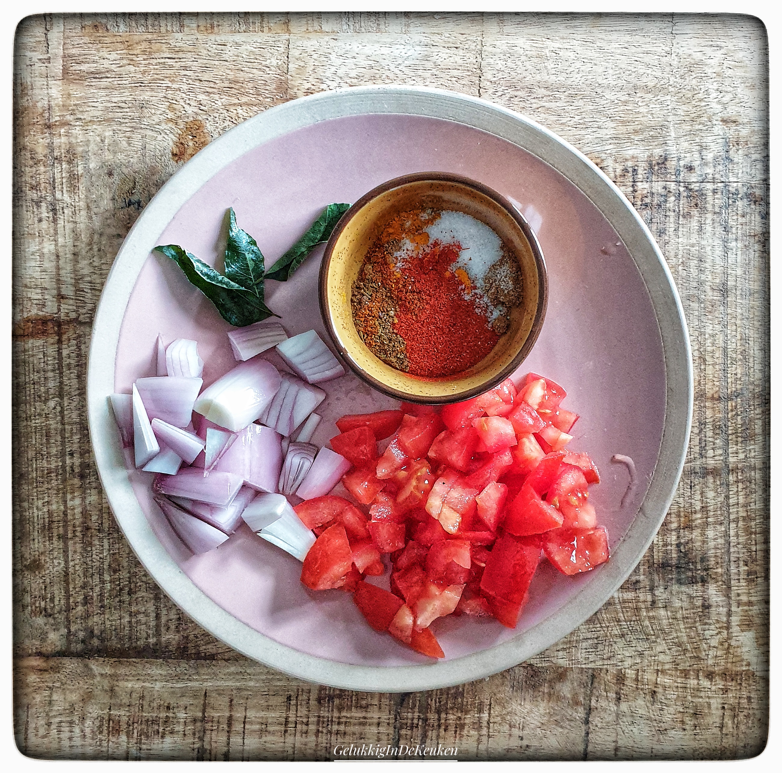 Meng de ingrediënten voor het specerijenmengsel in een schaaltje en laat het even staan.