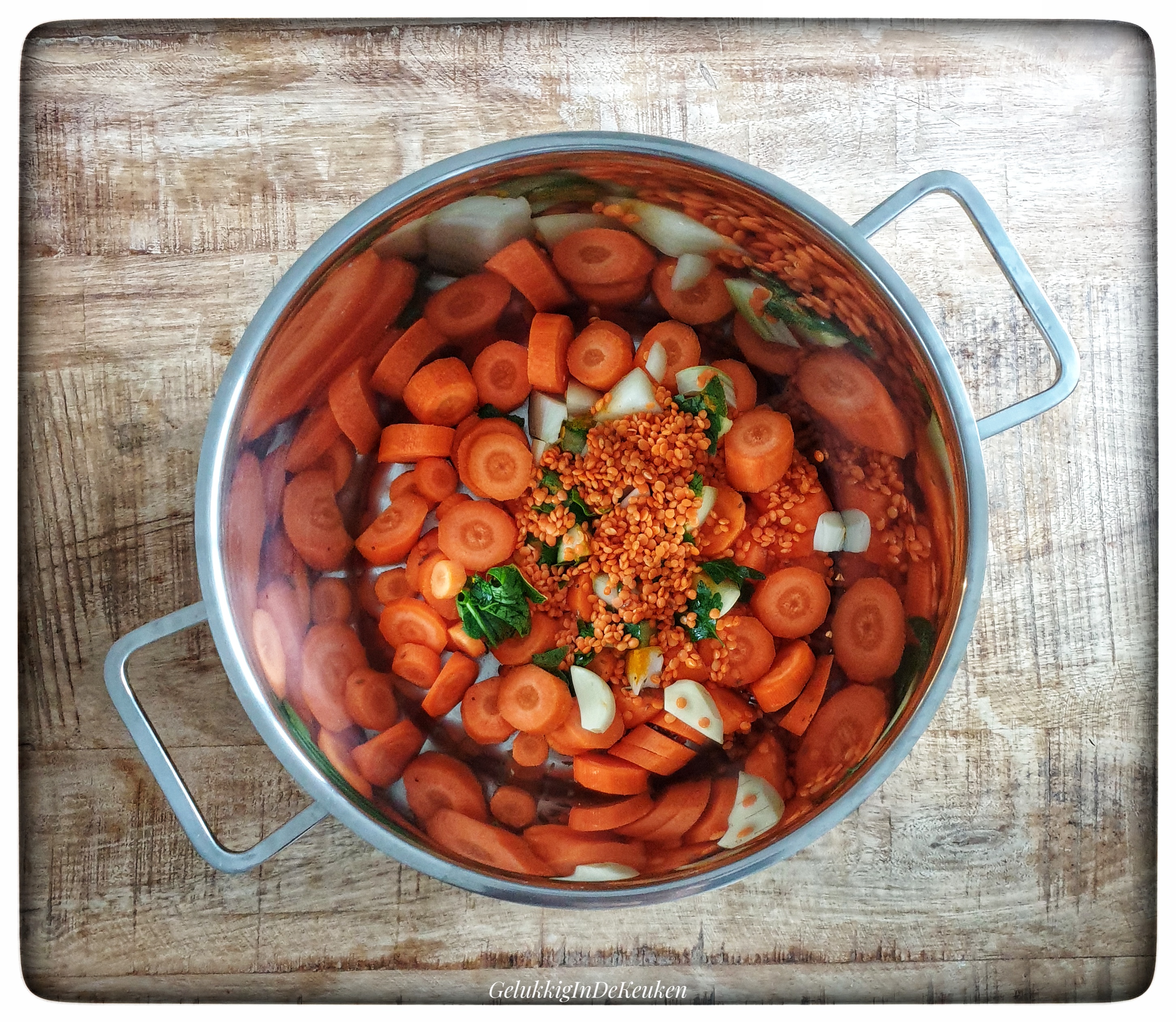 Dit is een heerlijke soep van wortel en rode linzen. Het is een vrij dikke soep. Voeg eventueel wat water toe als het je meer vloeibaar wil hebben.