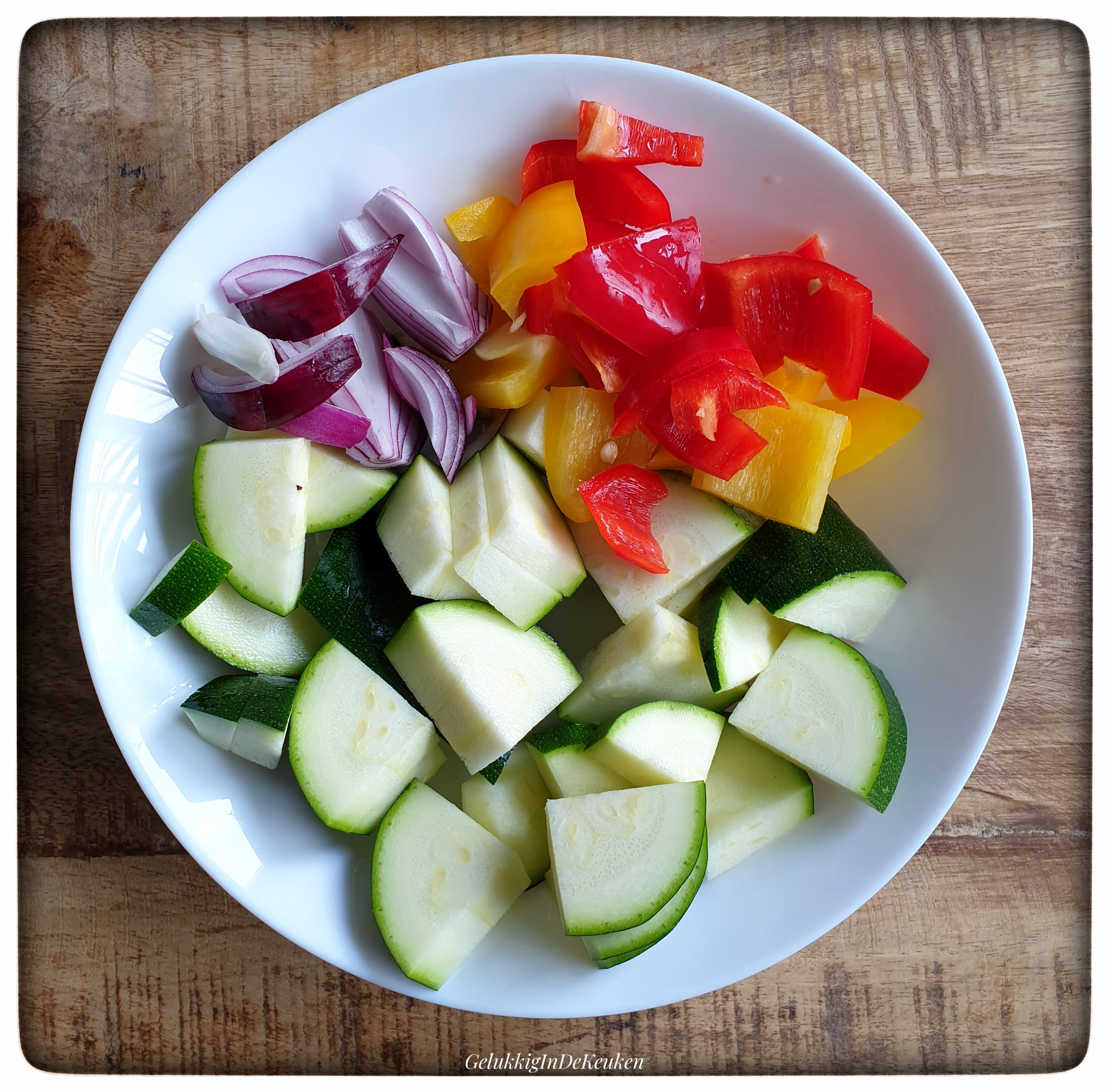 Ik had vrij grote krieltjes en heb deze gehalveerd en sommige in drie stukjes gesneden.