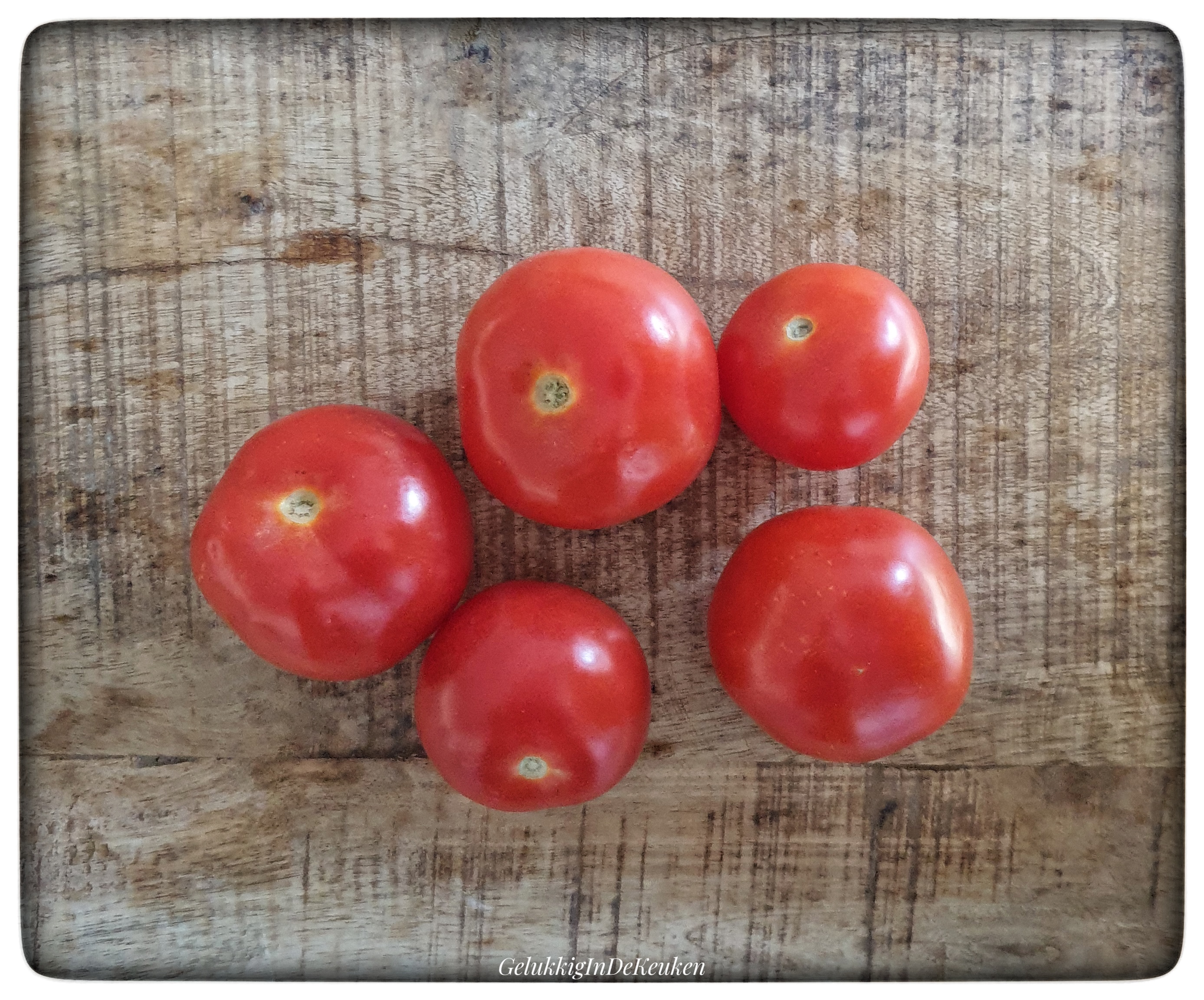 Ik snijd de tomaten en pureer het in een krachtige blender. De schil laat ik er altijd aanzitten.