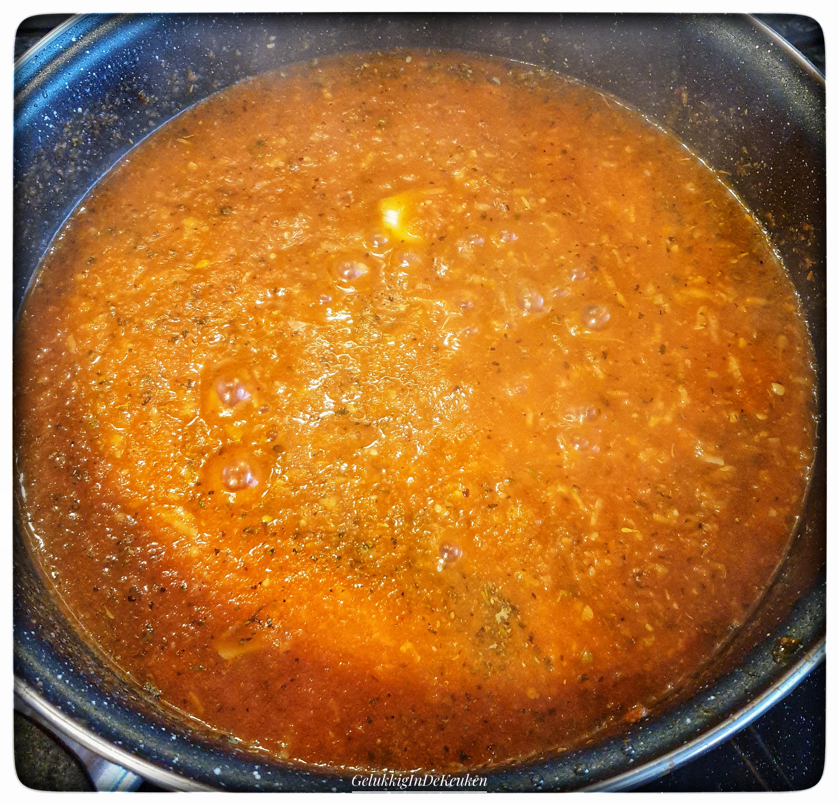 Doe de Italiaanse kruiden bij de saus en kook nog 15 minuten.