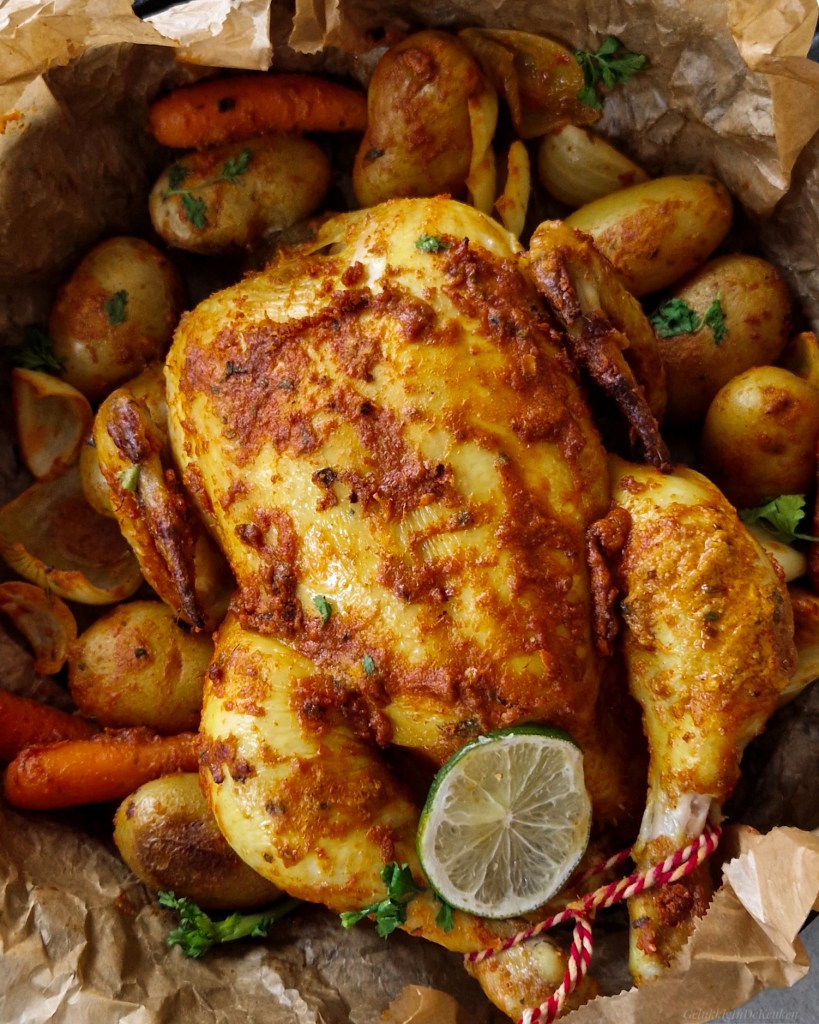 Kan jij ook genieten van een heerlijk sappig kippetje? Deze hele kip wordt eerst gemarineerd in yoghurt, knoflook, gember en specerijen. De marinade geeft veel smaak aan de kip en zorgt ervoor dat het heerlijk mals blijft.