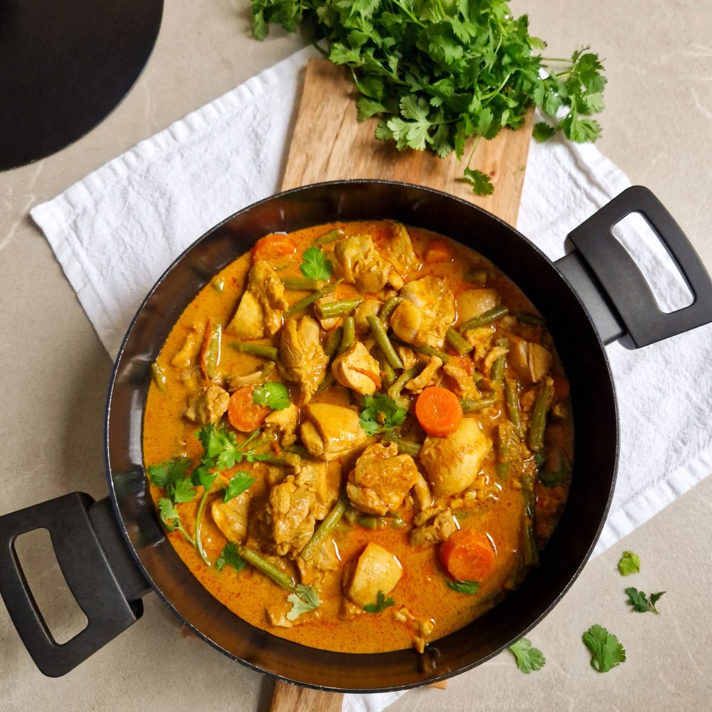 Het liefst eet ik 3 á 4 keer per week een curry. Een curry van kip, rundvlees of garnalen. Het maakt mij niet uit. Het maakt mij ook niet uit welk seizoen het is, een curry kan voor mij altijd. Maar een heerlijke curry op een herfstachtig of winterse dag geeft je een extra verwarmend gevoel.