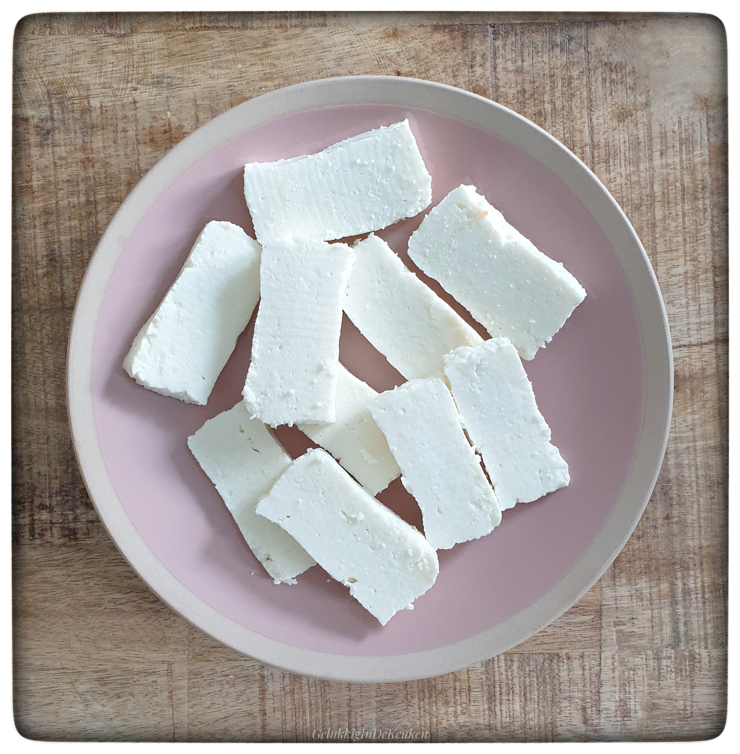 Snijd de paneer in plakjes of blokjes en bestrooi met een snufje zout.