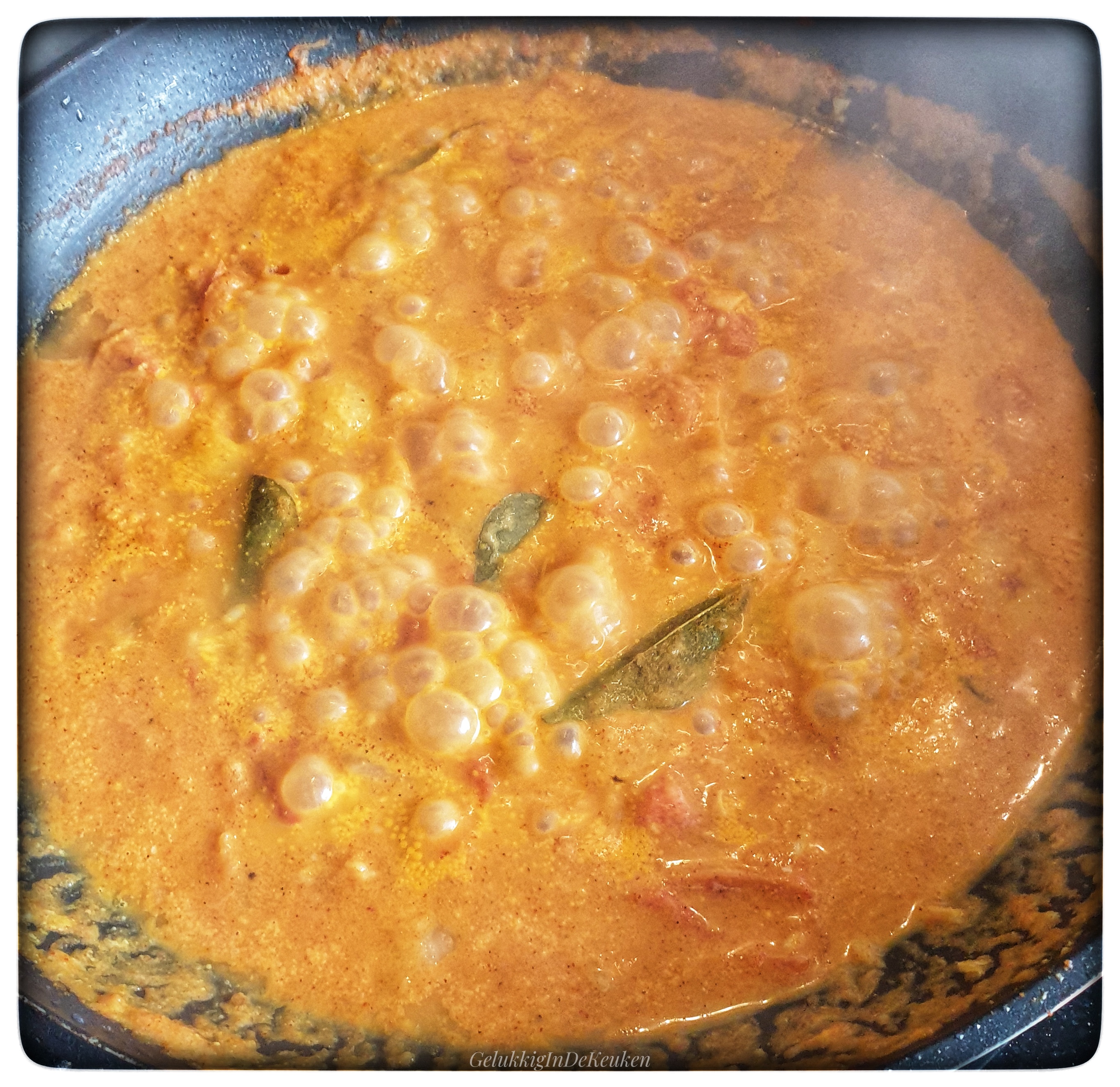 Ik bak de paneer even aan voordat ik het in de curry doe, zodat het wat steviger is en niet zo snel breekt in de curry. Als je de paneer in de curry hebt gedaan schep dan steeds voorzichtig om, zo blijven de stukjes heel.