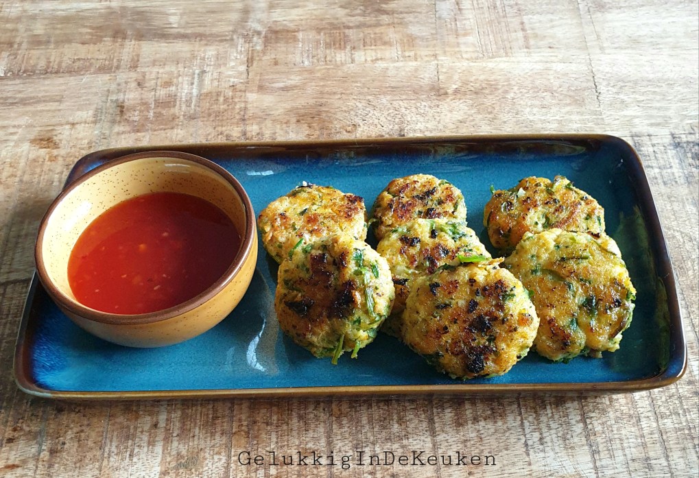 Een lekkere snack! Kipkoekjes met mozzarella. De mozzarella zorgt ervoor dat ze lekker sappig blijven.