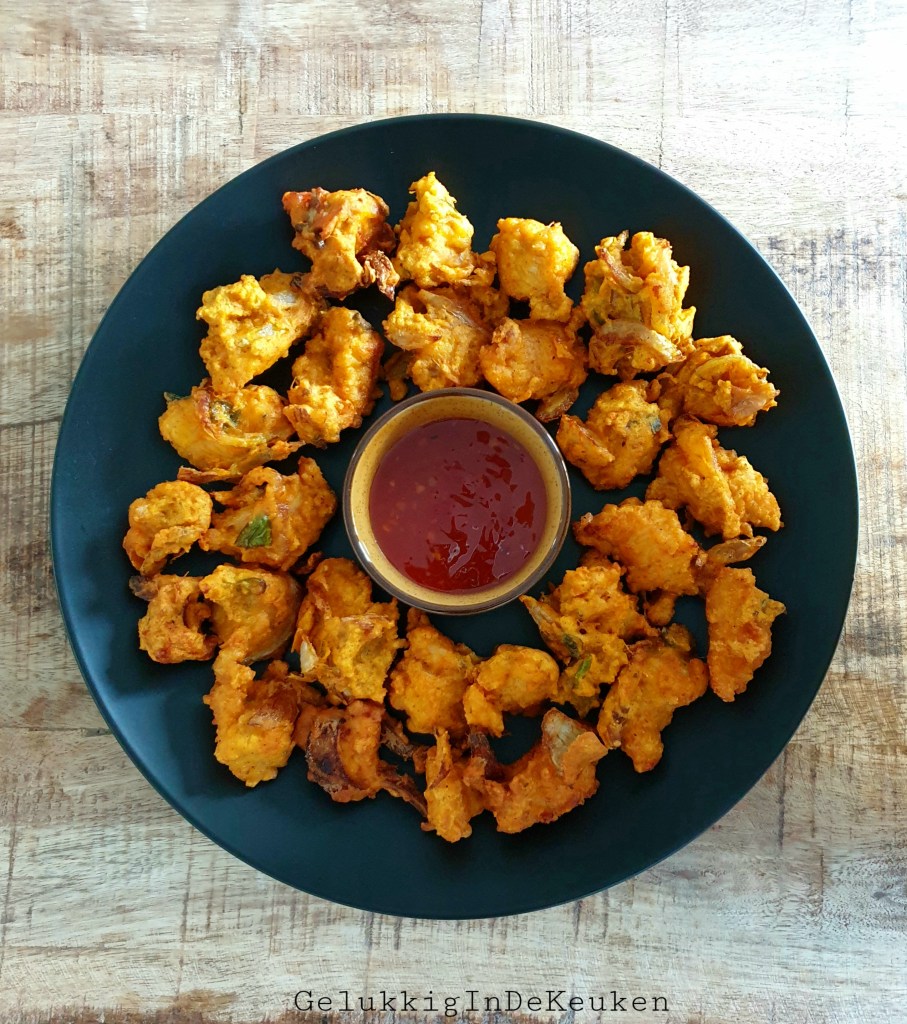 Een populaire snack in India. Het zijn stukjes kip omhuld in een beslag van kruidige kikkererwtenmeel en rijstbloem. De pakora’s zijn krokant van buiten met binnenin malse kip.